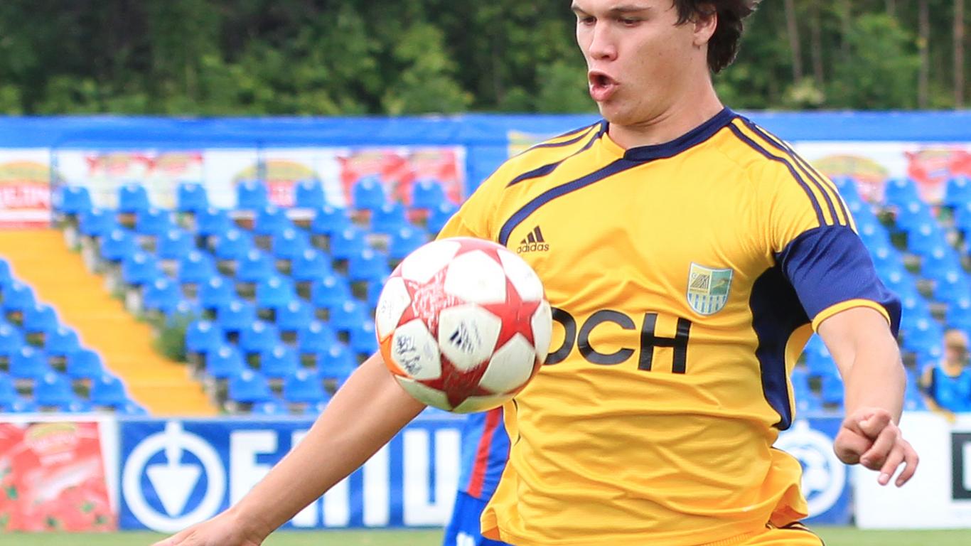 Wallpaper Sergei Volkov striker Amkar with young footballer