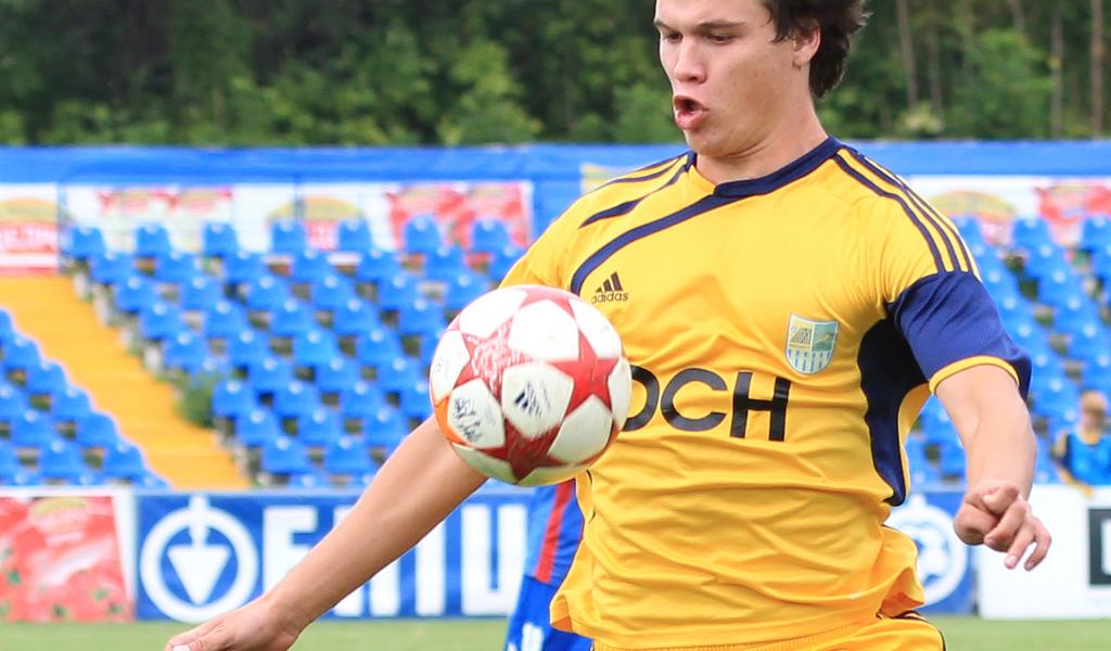 Wallpaper Sergei Volkov striker Amkar with young footballer