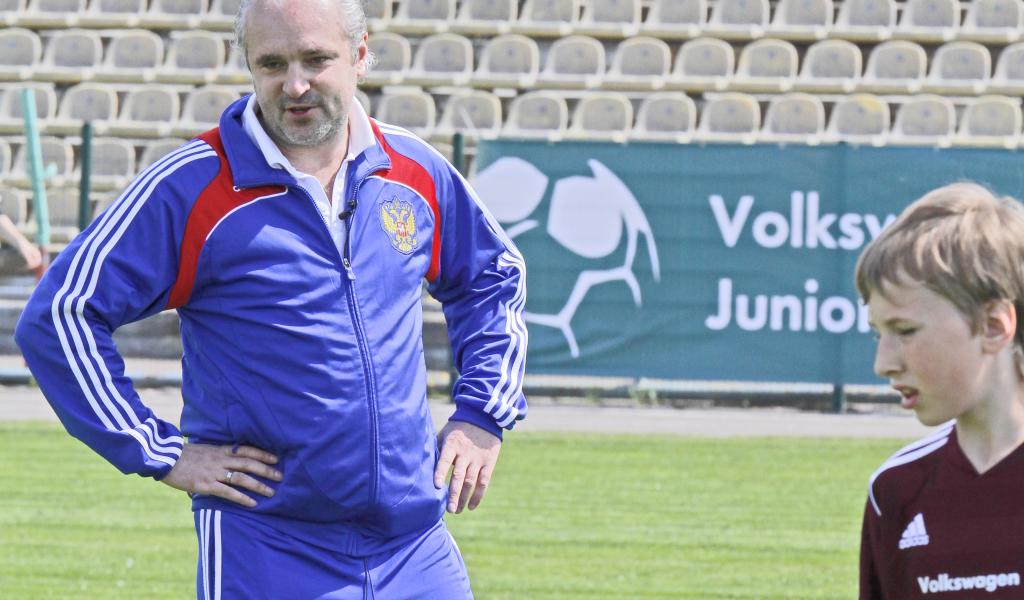 Wallpaper Legendary goalkeeper Igor Shalimov with young footballers