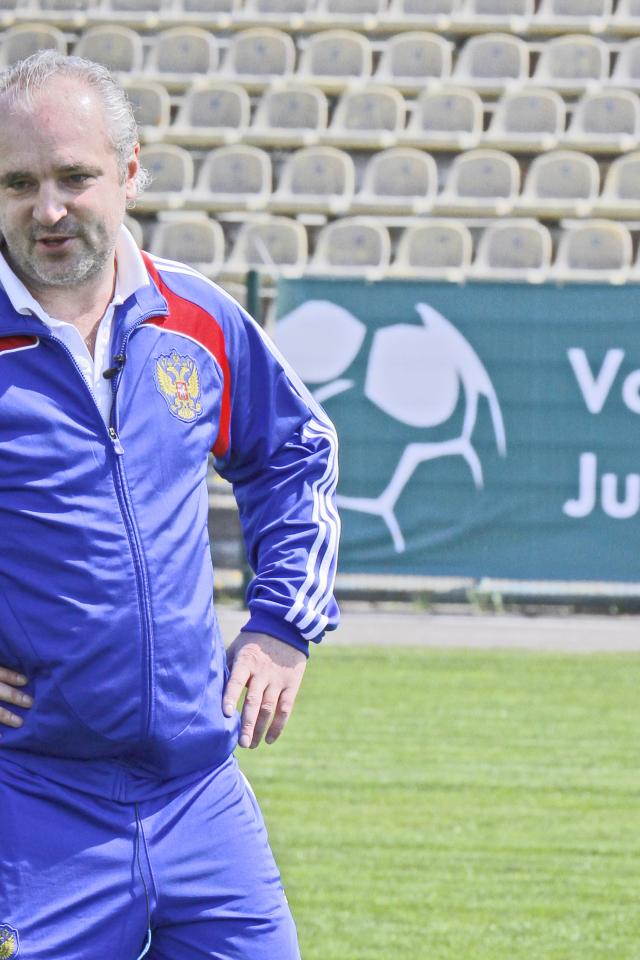 Wallpaper Legendary goalkeeper Igor Shalimov with young footballers