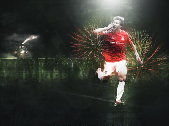 Wallpaper Lokomotiv striker Dmitry Sychev fireworks on the background