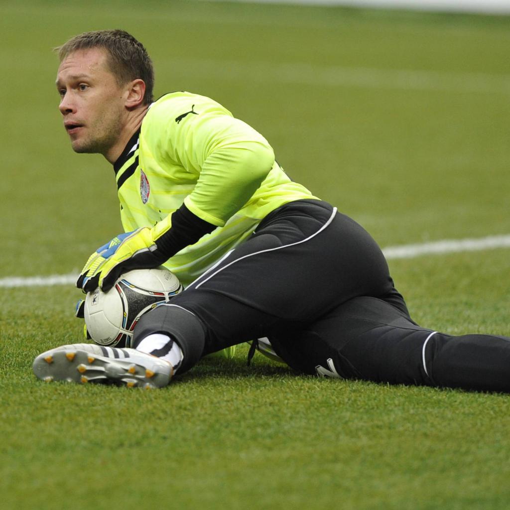 Wallpaper Amkar goalkeeper Sergei Narubin on the field