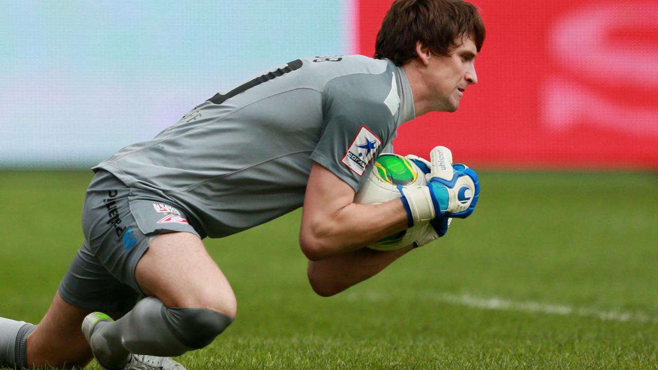 Wallpaper Caught the ball in the hands of goalkeeper Sergei Spartacus Pesyakova