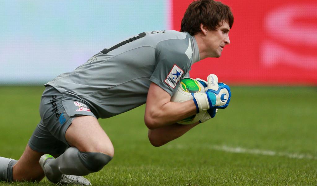 Wallpaper Caught the ball in the hands of goalkeeper Sergei Spartacus Pesyakova