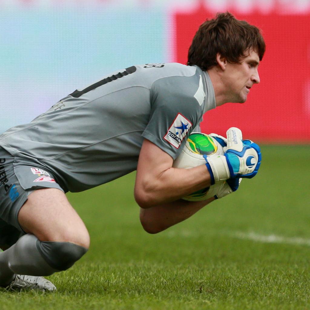 Wallpaper Caught the ball in the hands of goalkeeper Sergei Spartacus Pesyakova