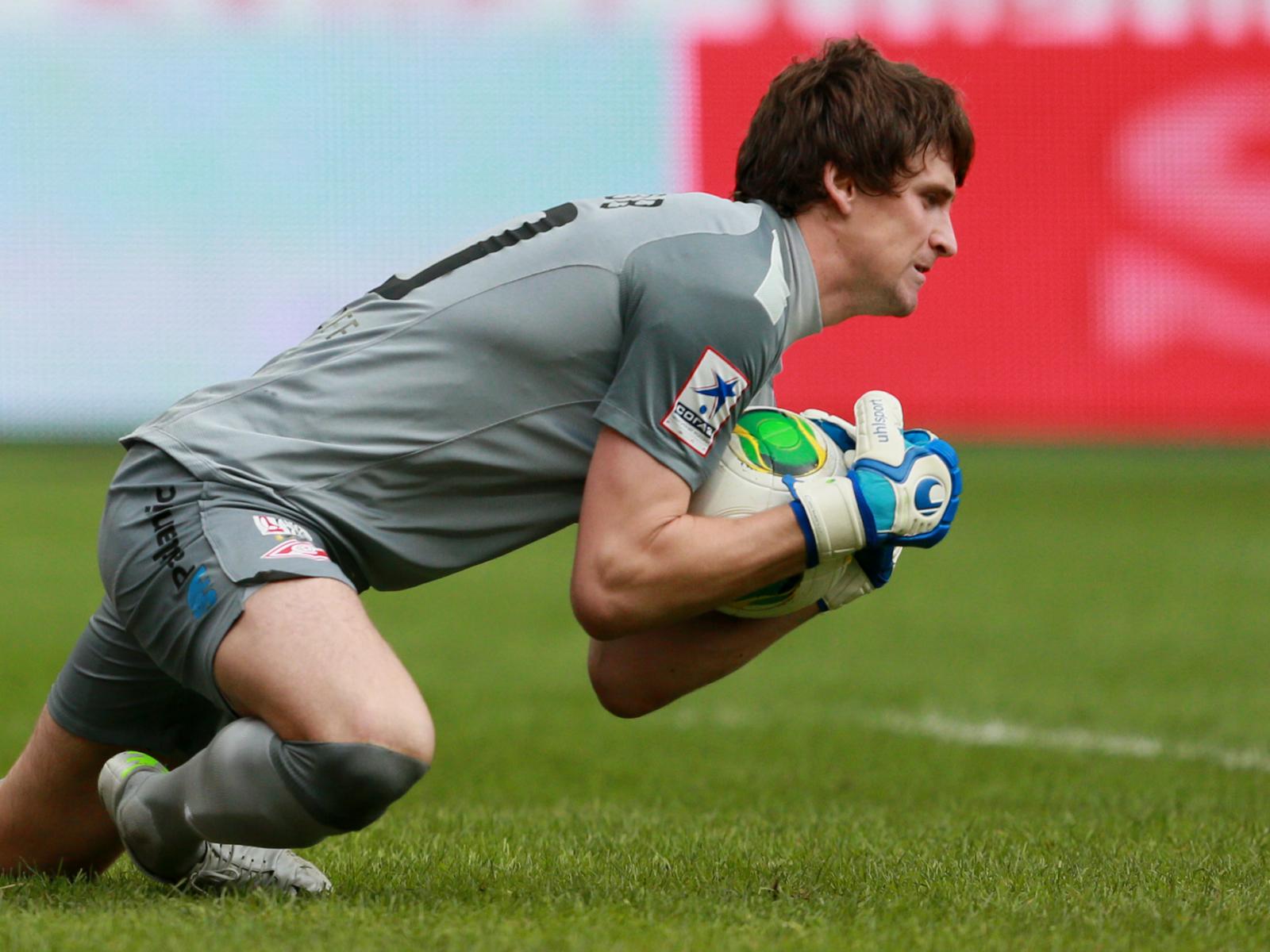 Wallpaper Caught the ball in the hands of goalkeeper Sergei Spartacus Pesyakova