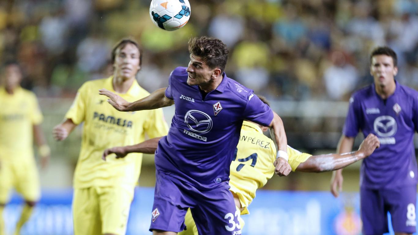 Wallpaper The player of Fiorentina Mario Gomez is hitting a ball