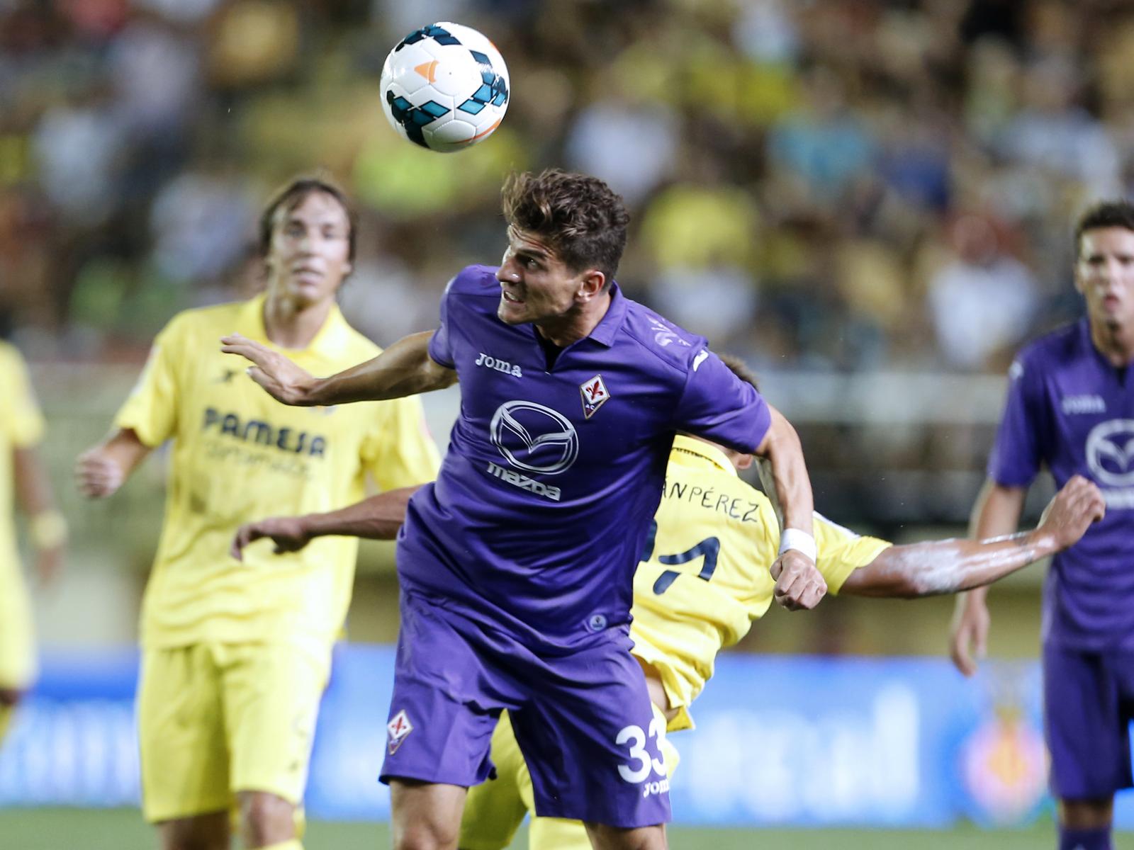 Wallpaper The player of Fiorentina Mario Gomez is hitting a ball