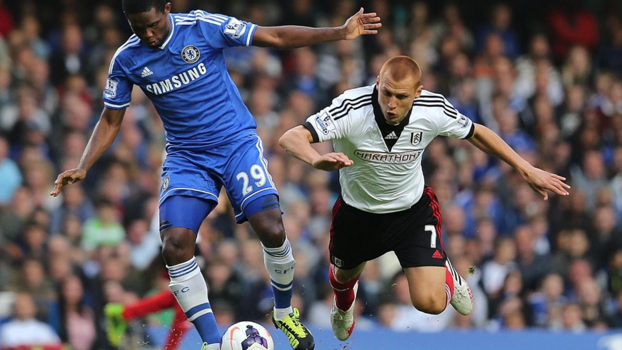 Wallpaper Chelsea Samuel Eto`o is fighting for the ball