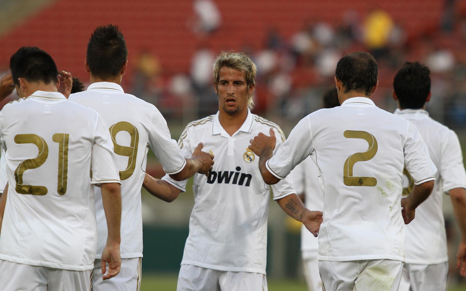 Wallpaper The player of Real Madrid Fábio Coentrão surrounded by his team