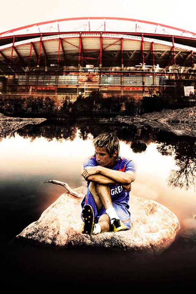 Wallpaper The player of Real Madrid Fábio Coentrão sitting near a stadium