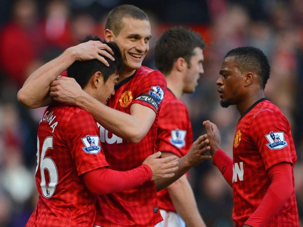 Wallpaper The player of Manchester United Nemanja Vidic hugging his teammate