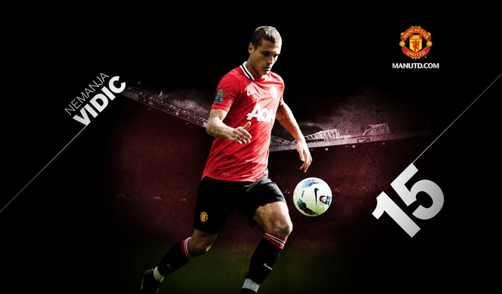 Wallpaper The player of Manchester United Nemanja Vidic on the field