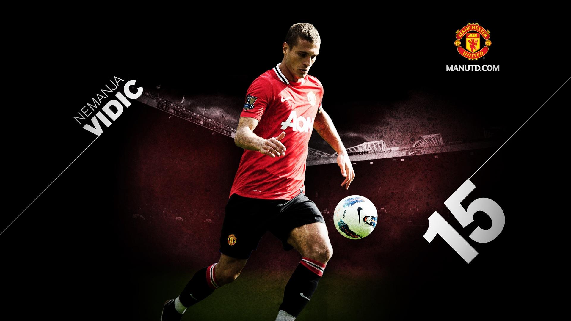 Wallpaper The player of Manchester United Nemanja Vidic on the field