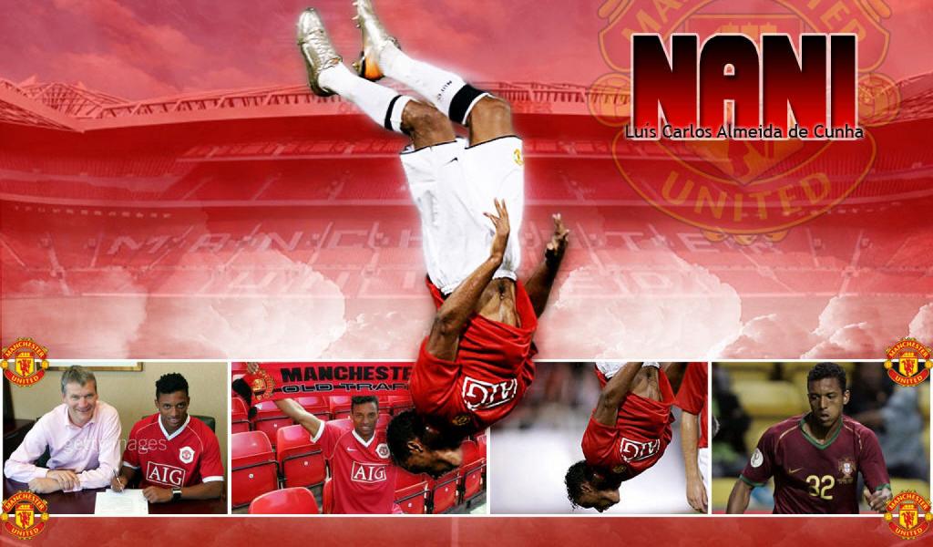 Wallpaper The halfback of Manchester United Luis Nani is doing a flip