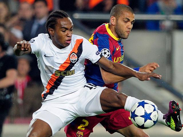 Wallpaper The defender of Barcelona Daniel Alves is fighting for the ball