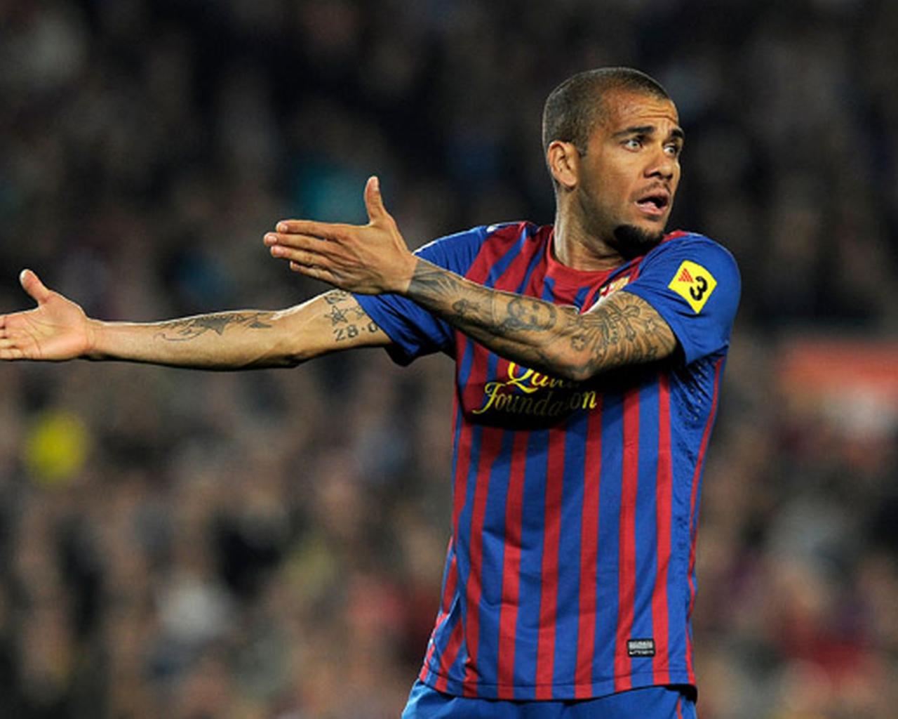 Wallpaper The defender player of Barcelona Daniel Alves got a yellow card