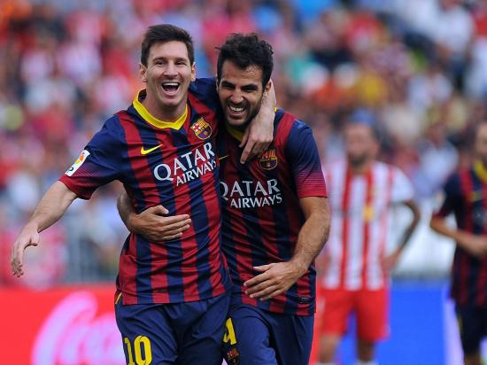 Wallpaper The football players of Barcelona Francesc Fabregas and Lionel Messi