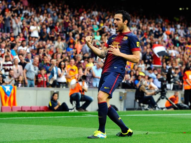 Wallpaper The halfback of Barcelona Francesc Fabregas scored a goal