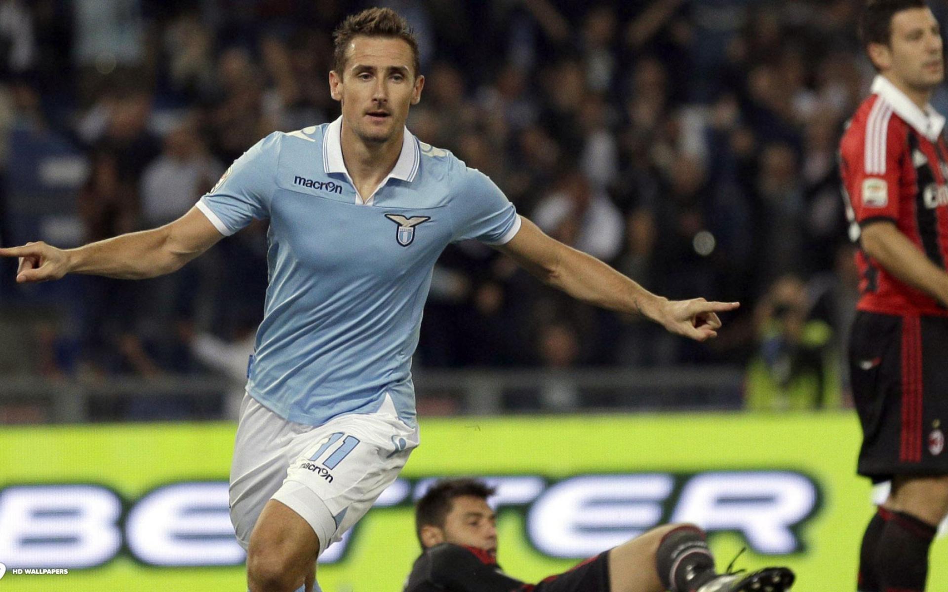 Wallpaper The best player of Lazio Miroslav Klose is flying over the field