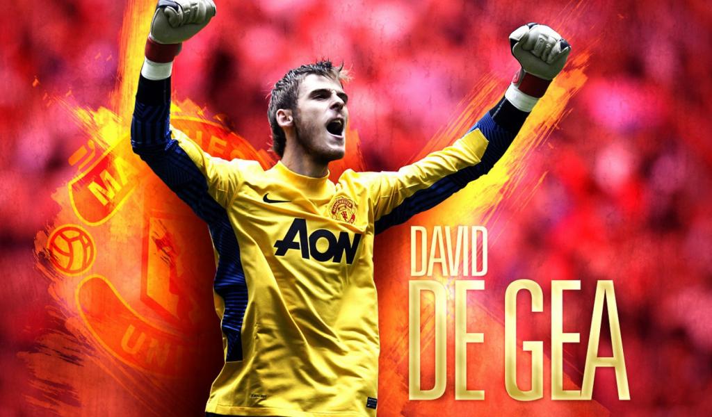 Wallpaper The player of Manchester United David De Gea on red background