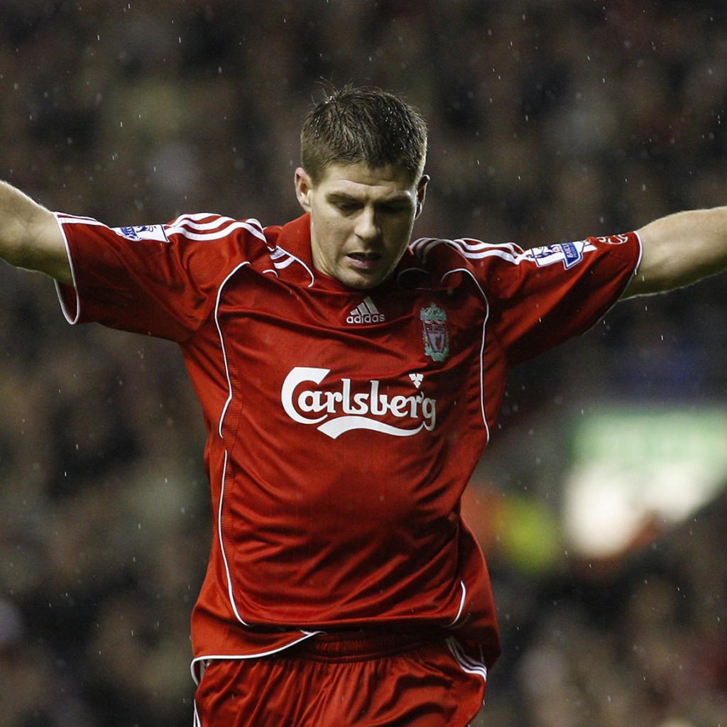 Wallpaper The player of Liverpool Steven under the rain