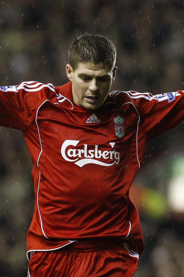 Wallpaper The player of Liverpool Steven under the rain