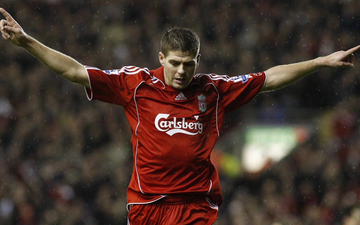 Wallpaper The player of Liverpool Steven under the rain