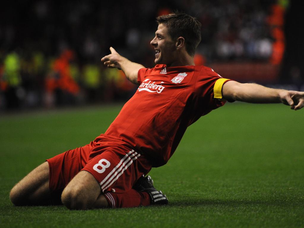 Wallpaper The halfback of Liverpool Steven after winning the game