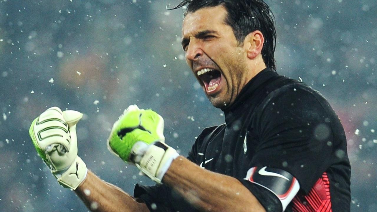 Wallpaper The goalkeeper of Juventus Gianluigi Buffon under the rain