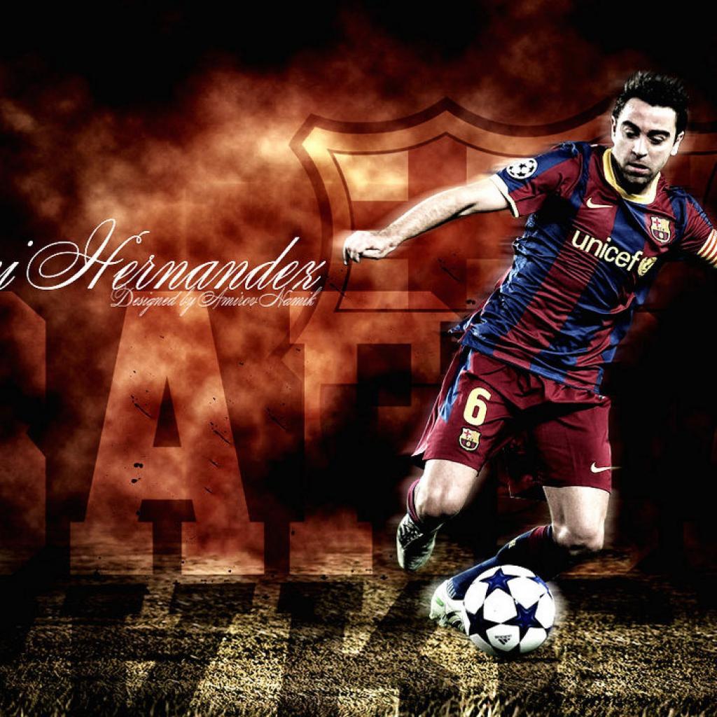 Wallpaper The player of Barcelona Xavi Hernandez is hitting a ball