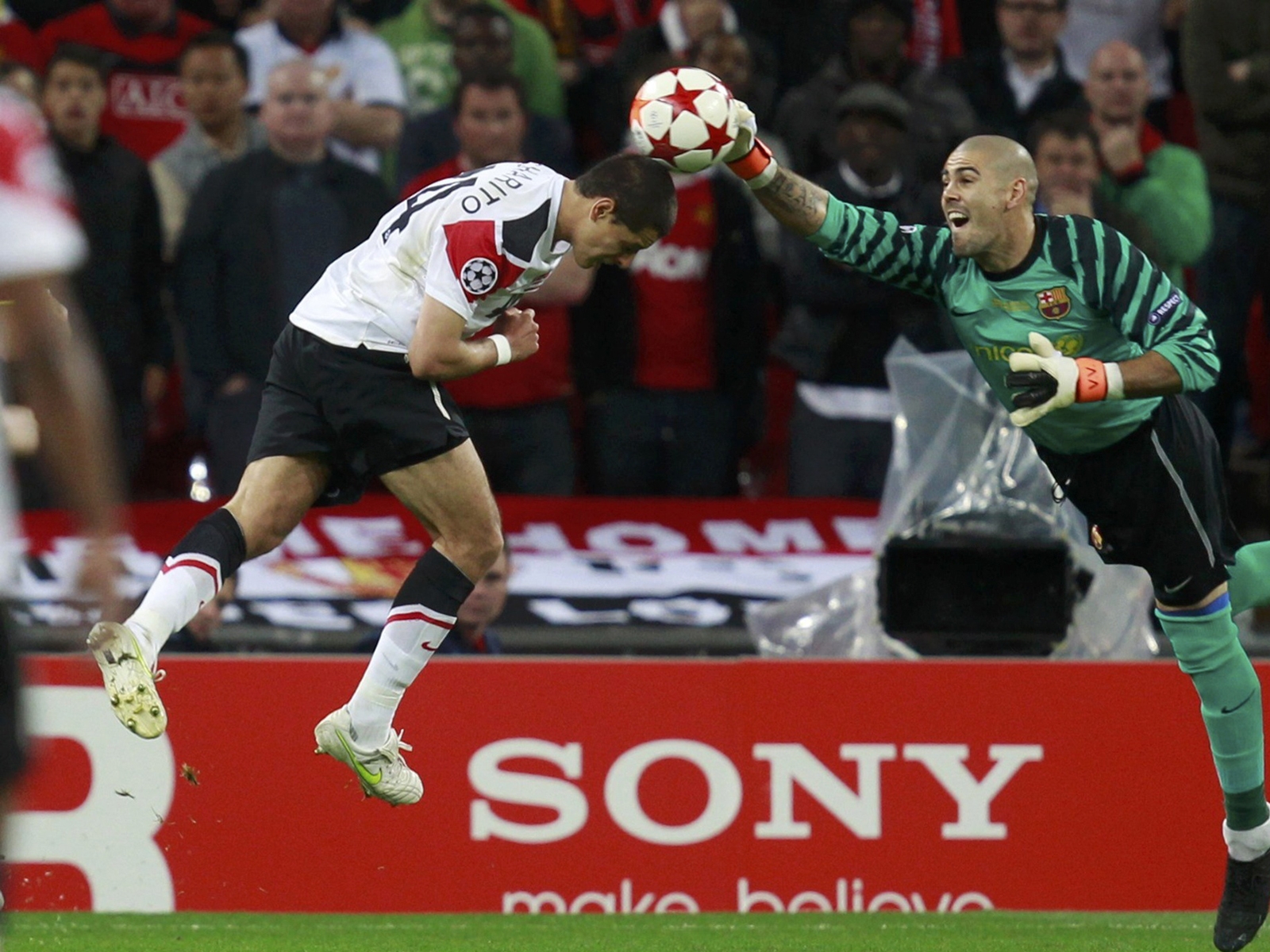 Wallpaper The player of Barcelona Victor Valdes catching a ball