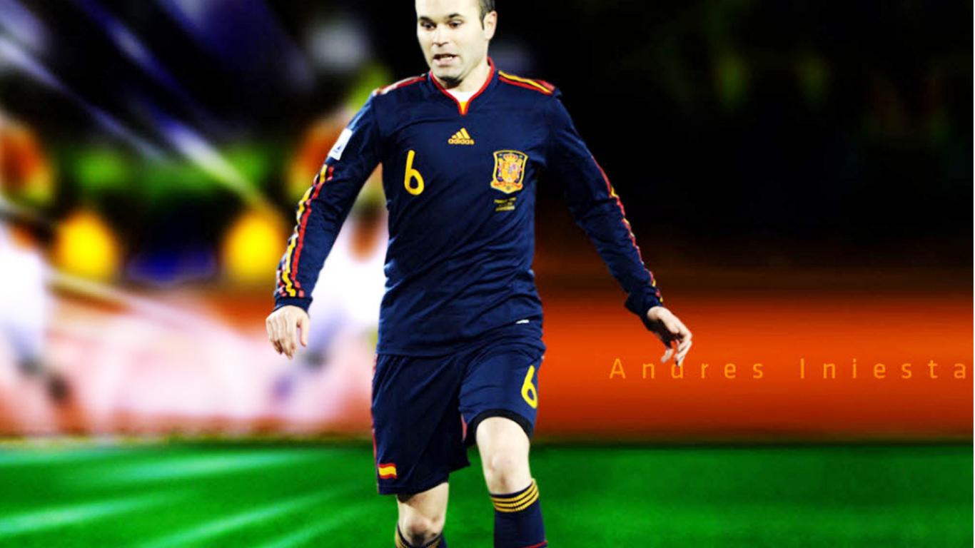 Wallpaper The player of Barcelona Andres Iniesta on the field