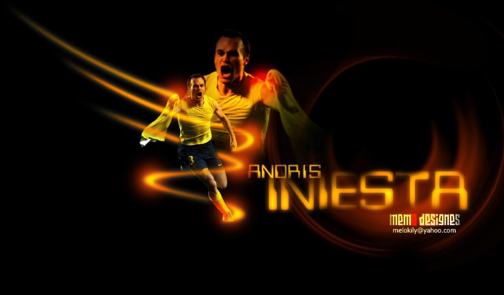 Wallpaper The player of Barcelona Andres Iniesta on black background