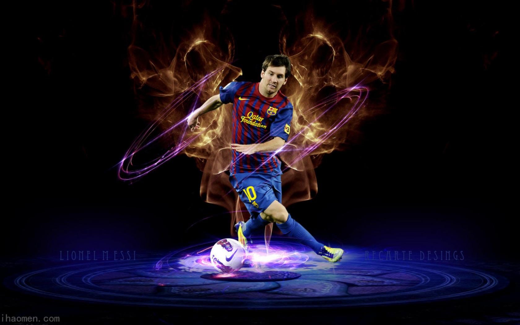 Wallpaper The forward of Barcelona Lionel Messi in dark background