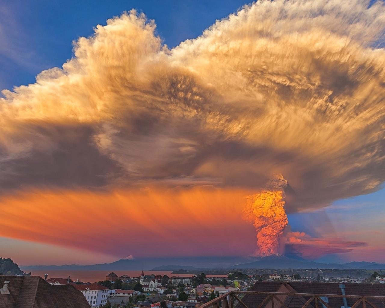 Wallpaper Unusual cloud over the volcano Calbuco, Chile