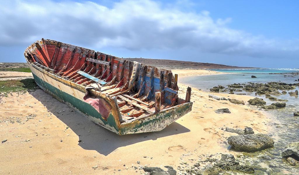Wallpaper The skeleton of a boat on the beach in Aruba