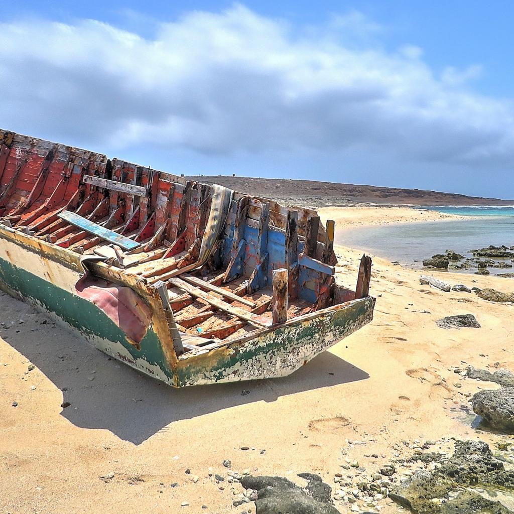 Wallpaper The skeleton of a boat on the beach in Aruba