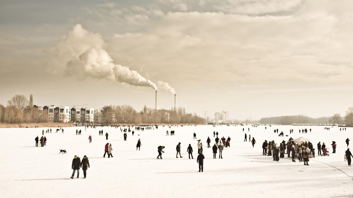 » Wallpaper People walk on frozen river
