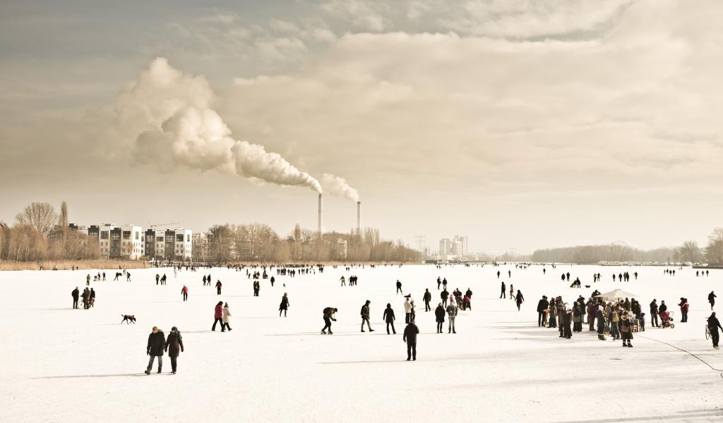» Wallpaper People walk on frozen river