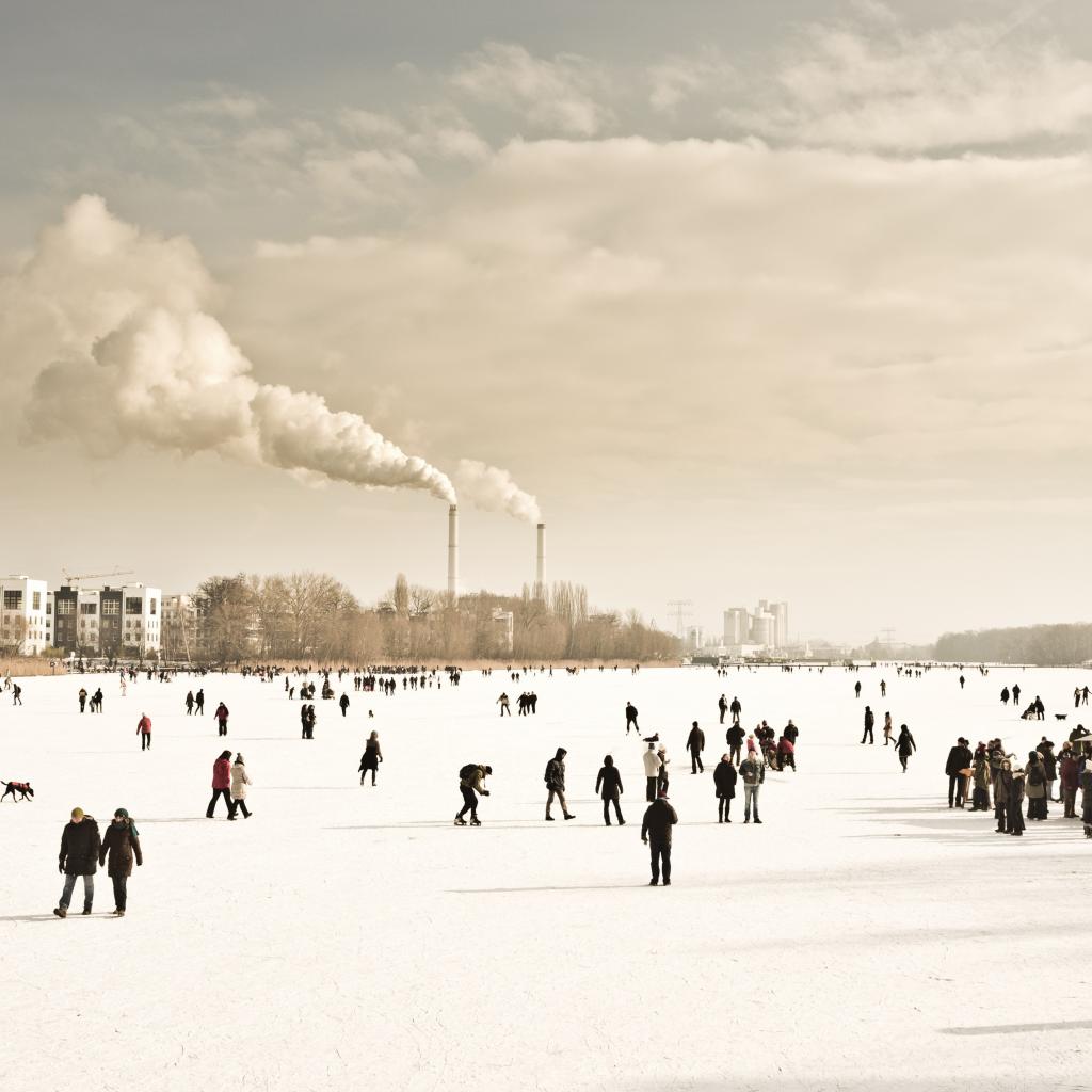 Wallpaper Kids are skating on the frozen river in the Netherlands