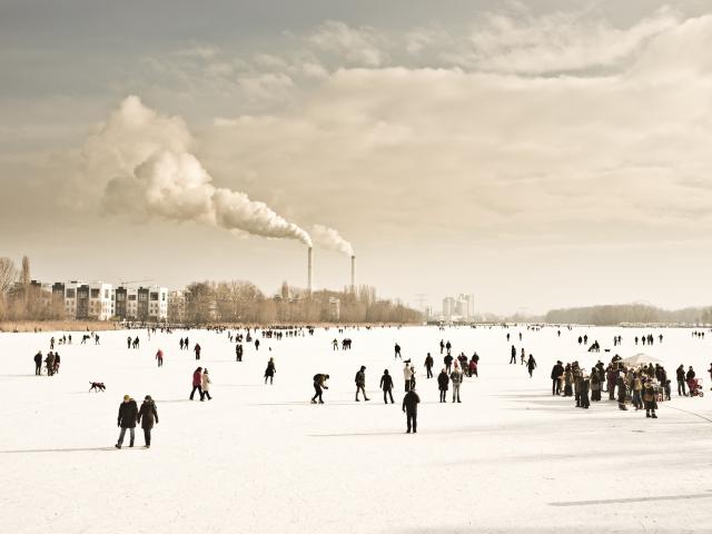 » Wallpaper People walk on frozen river