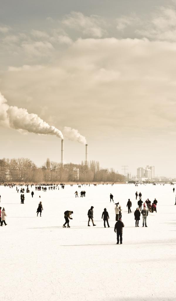 » Wallpaper People walk on frozen river