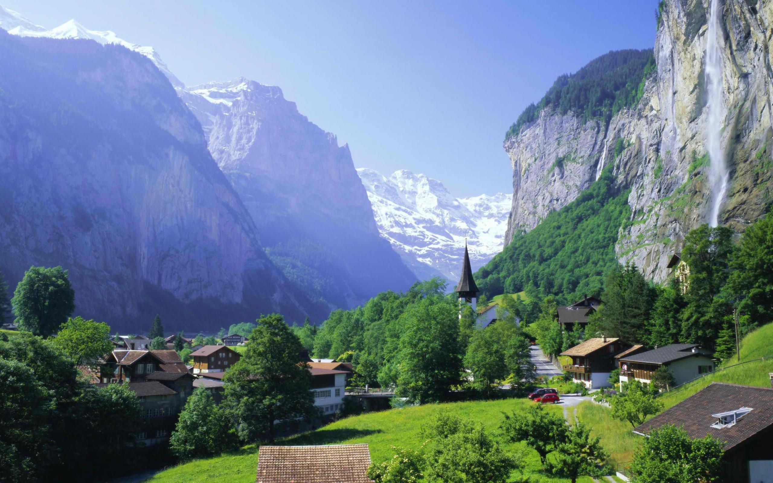 Wallpaper The town at the foot of steep cliffs