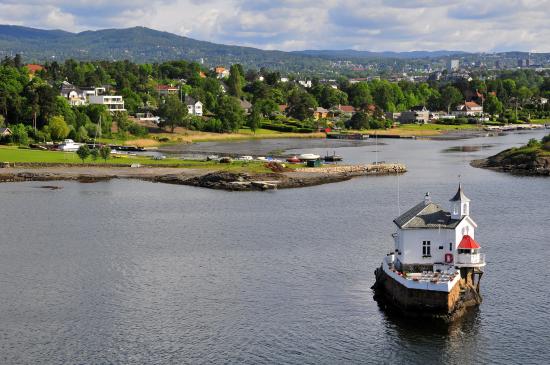 Wallpaper Little House on the rock in the middle of the river