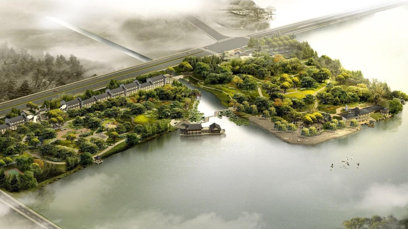 Wallpaper Pieces of land among the water