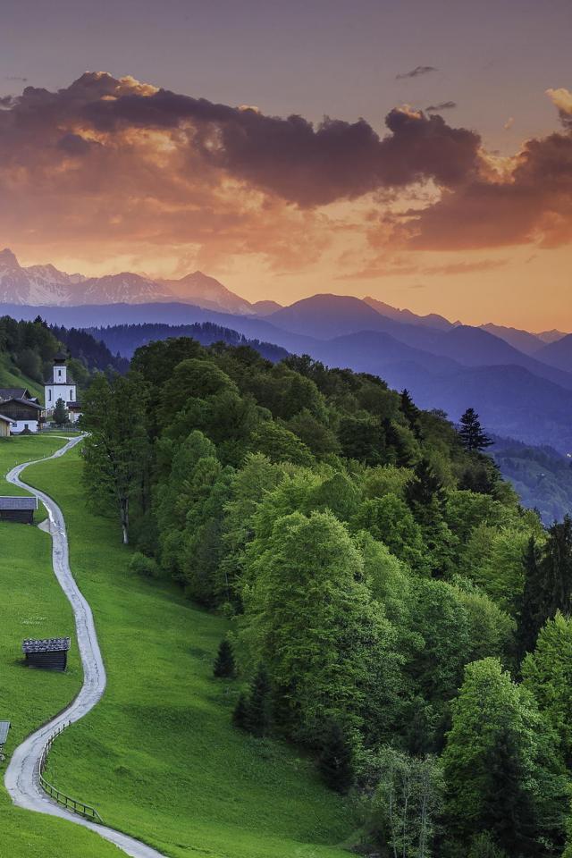 Wallpaper The road to the estate in the Alpine village