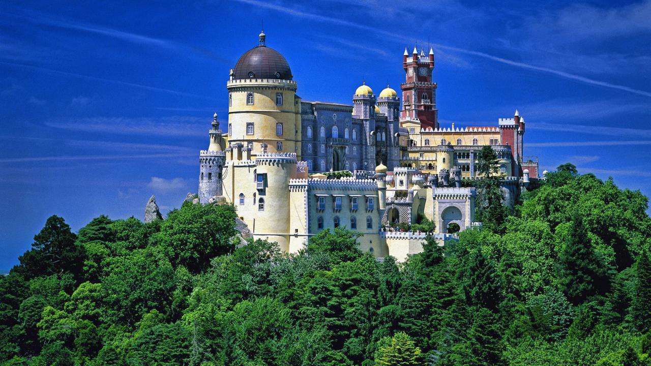 Wallpaper Fairy-tale castle on a hill among the trees