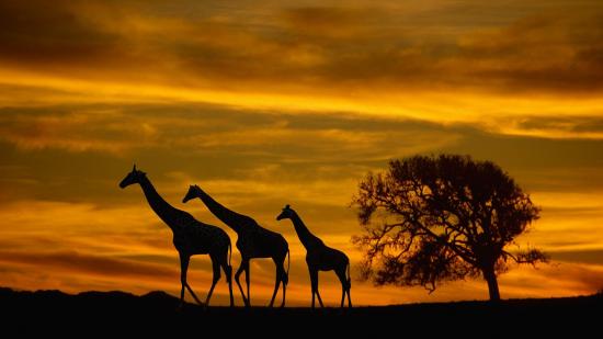 Wallpaper Family of giraffes at sunset in Africa