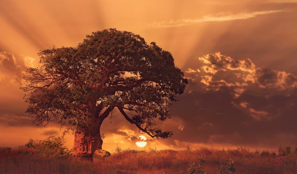Wallpaper Huge baobab tree at sunset in Africa